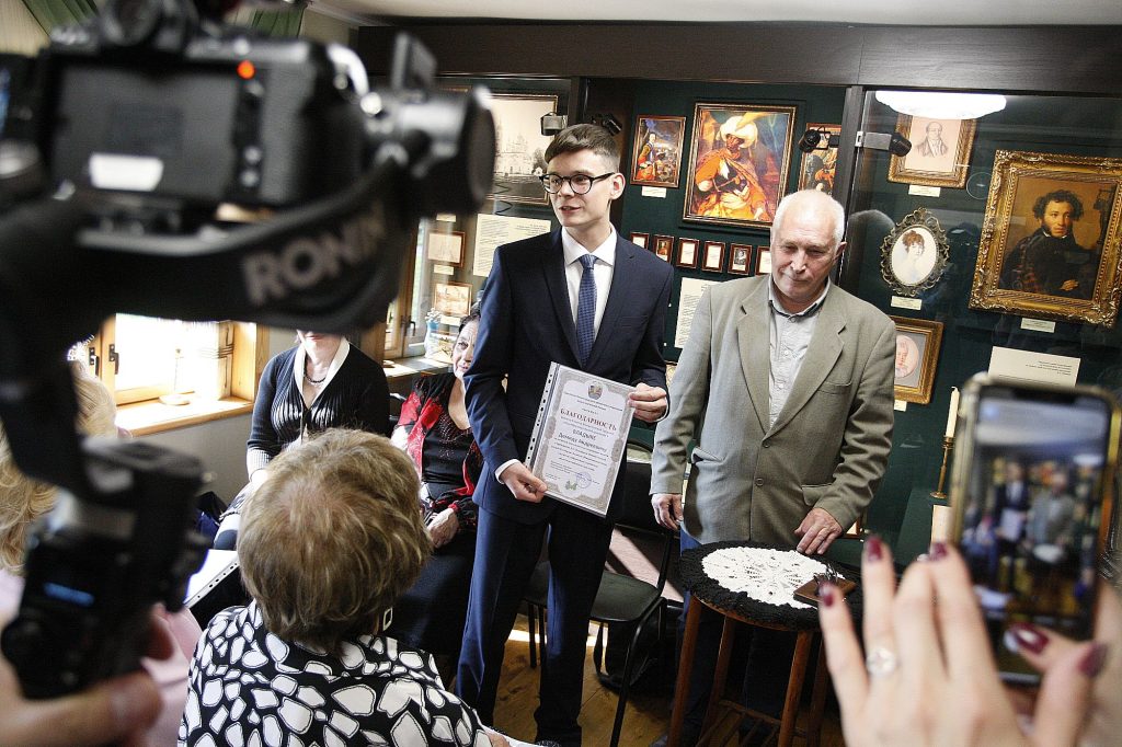 В свою очередь Е. Г. Антонова наградила Ленинградское отделение Союза писателей России Благодарственным письмом от Совета депутатов и администрации МО «Кингисеппский муниципальный район» за участие в судьбе Михайловской мызы и популяризацию пушкинского наследия. Ею также были вручены подарки – замечательные издания, касающиеся истории Ямбургского уезда и Кингисеппского района.
