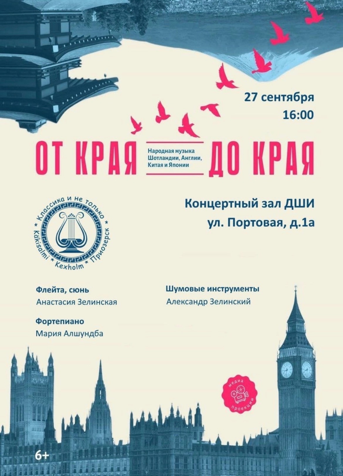 В программе «От края до края» вас ждет уникальное музыкальное путешествие. Будет звучать народная музыка Шотландии, Англии, Китая и Японии.