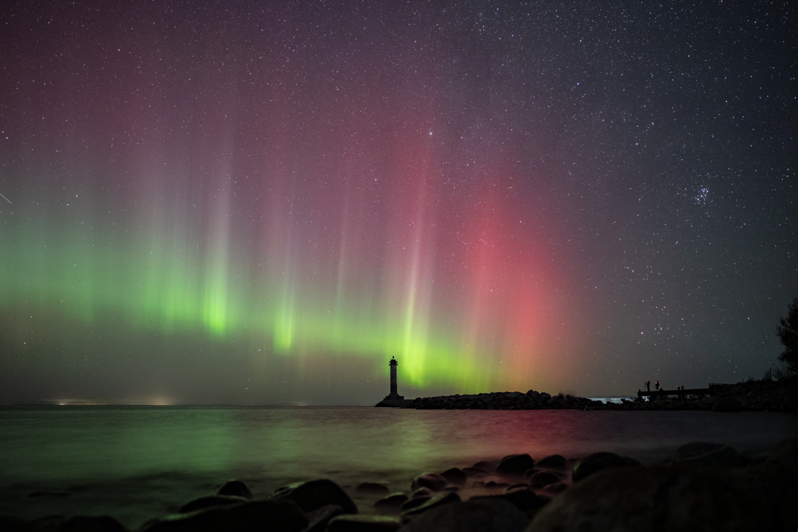 На фоне сияния можно было наблюдать другие астрономические явления: мерцающую арку Млечного Пути и пролёт яркого болида над созвездием Большой Медведицы. Его след оставался в небе продолжительное время.