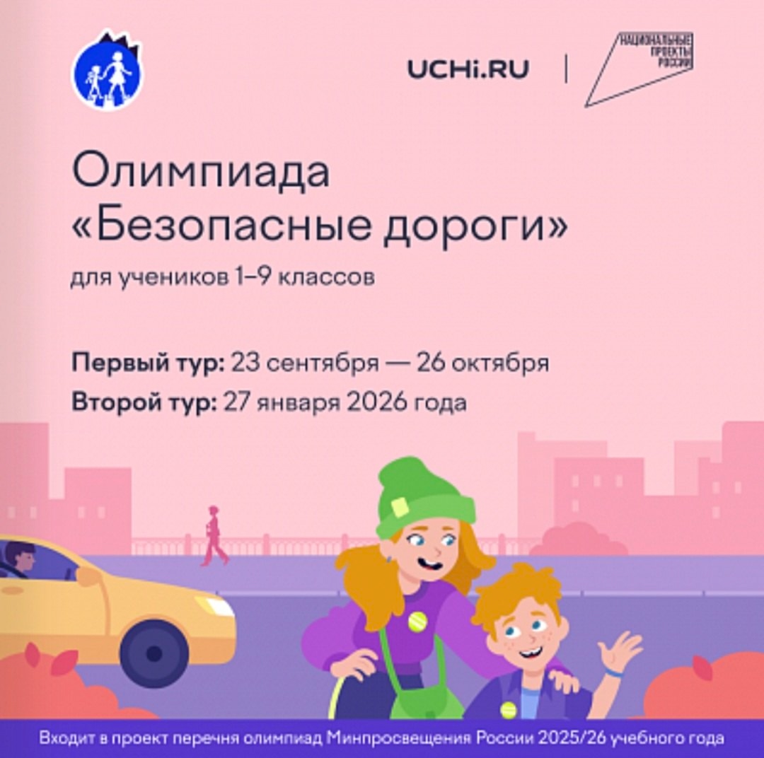 С 23.09.25 по 26.10.25 на территории Приозерского района Ленинградской области пройдёт Всероссийская онлайн — олимпиада «Безопасные дороги», в которой примут участие обучающиеся 1-9 классов общеобразовательных организаций на онлайн платформе «Учи.ру».