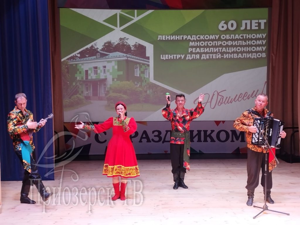На празднике в честь юбилея выступили лучшие творческие коллективы и солисты Приозерского района, ансамбль русской песни «Самовар». Тронуло гостей киноконцертного зала выступление воспитанники центра – Мария Демидова спела песню, Виктория Иванова и Николай Аникеенко исполнили танец «Дождик». Подготовила выступление ребят воспитатель Ирина Федоренко.