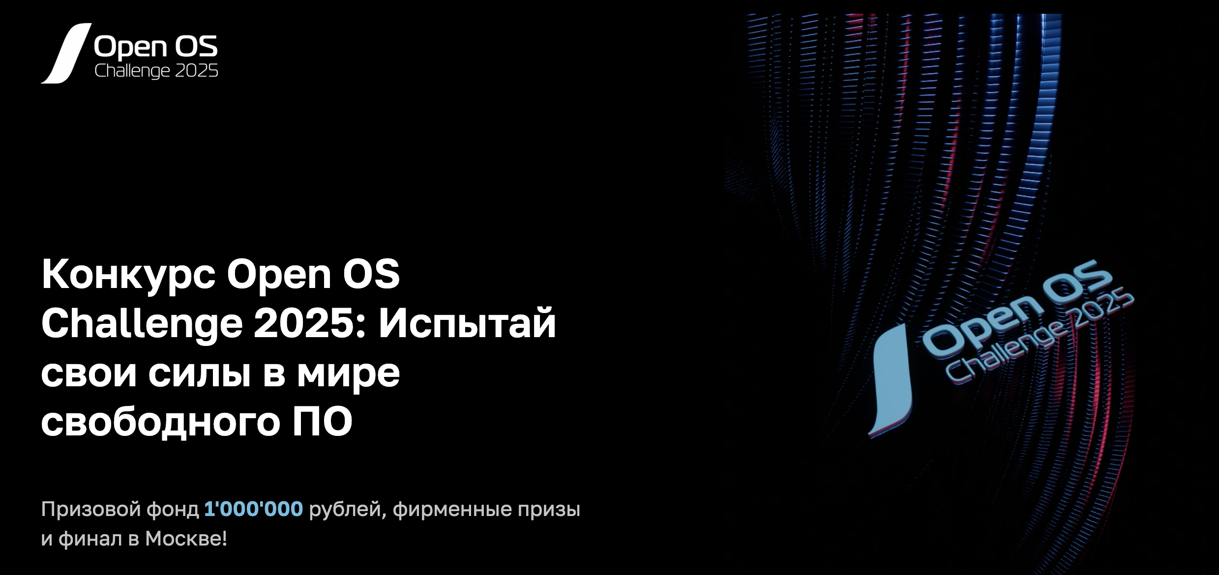 Третий год подряд Open OS Challenge собирает талантливых разработчиков и энтузиастов Open Source! 15 сентября стартовал новый, уже третий по счёту конкурс Open OS Challenge 2025 – посвящённый разработке открытых операционных системам на основе ядра Linux, с призовым фондом в 1 000 000 рублей!