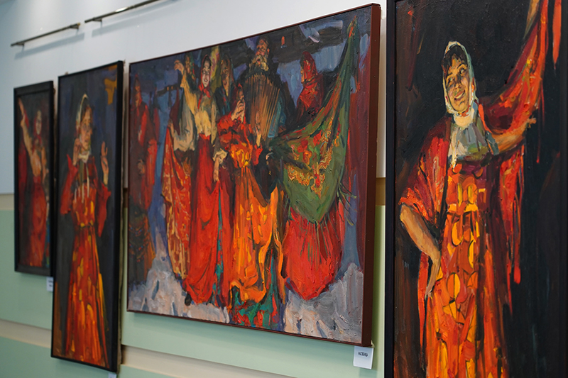 На нашей выставке вы сможете увидеть эскиз дипломной работы Лады —  «Масленица», а также этюды к картине. Каждый из этюдов — это готовый портрет, рассказывающий о характере, темпераменте, возрасте, вкусах и любви героинь к народным традициям. Несомненно, и сама художница приветствует эти народные гулянья, чувствует их дух, удаль, задор, объединяющую силу вековых традиций. Эти работы играют яркими ситцами на полотнах художницы.  Их высоко оценили члены Государственной экзаменационной комиссии, сравнив её стиль и палитру с картинами знаменитых художников Филиппа Малявина и Абрама Архипова. Особо выделил дипломную работу Лады Виноградовой Председатель Государственной экзаменационной комиссии, Народный художник РФ, ректор Российской академии живописи, ваяния и зодчества имени Ильи Глазунова, Иван Ильич Глазунов,  похвалив её за мастерство, за обращение к народной теме.
