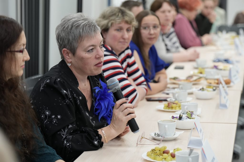 На встрече глава областного комитета образования не только поздравила учителей с их профессиональным праздником, вручила памятные подарки, но и обсудила с ними предложения по совершенствованию региональной системы образования. Например, Сергей Филатов, учитель начальных классов Ущевицкой школы, который переехал в регион из Липецкой области, предложил усилить методическую помощь педагогам.