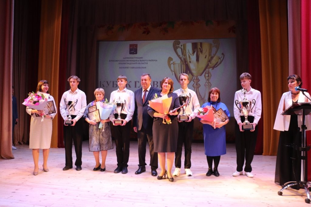 В рамках праздничного мероприятия состоялась церемония вручения по итогам конкурса среди муниципальных образовательных организаций на Кубок главы администрации Приозерского района в 2024-2025 учебном году. «Лучшим муниципальным образовательным учреждением дополнительного образования» была названа «Приозерская детская художественная школа», «Лучшим муниципальным дошкольным образовательным учреждением» признан Детский сад комбинированного вида № 2» п. Сосново. В номинации «Лучшее муниципальное образовательное учреждение основного общего образования» кубок и подарочный сертификат вручили Джатиевской основной общеобразовательной школе «Лучшим муниципальным образовательным учреждением среднего общего образования была названа средняя общеобразовательная школа № 1.