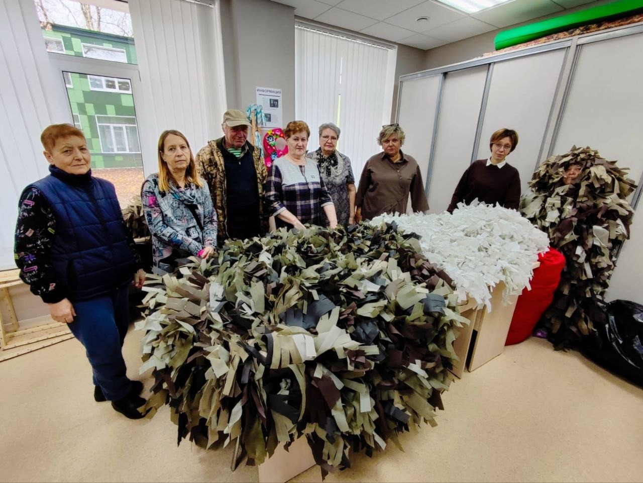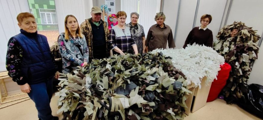 Серебряные волонтёры отряда «Мобильный тыл» Приозерского КЦСОН передали маскировочные сети для участников СВО.