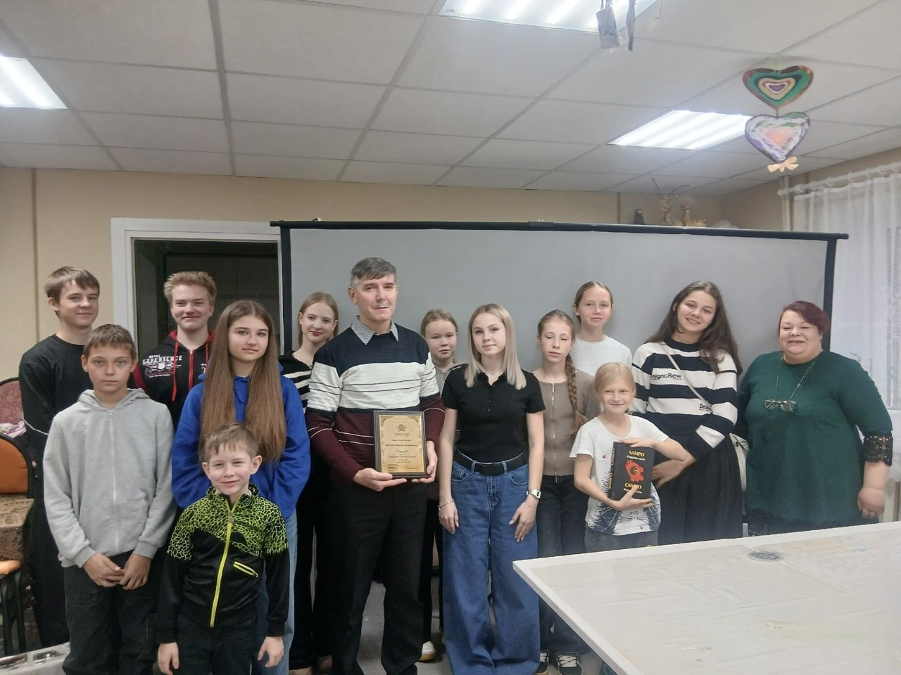 Дмитрий Анатольевич рассказал об истории книги, продемонстрировал презентацию и фильм о сыне. Школьники с интересом слушали, задавали вопросы и начали готовить свои работы для конкурса.