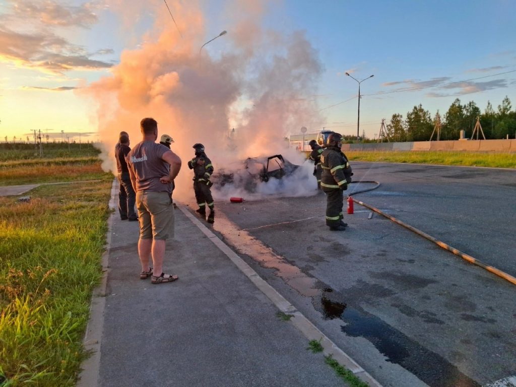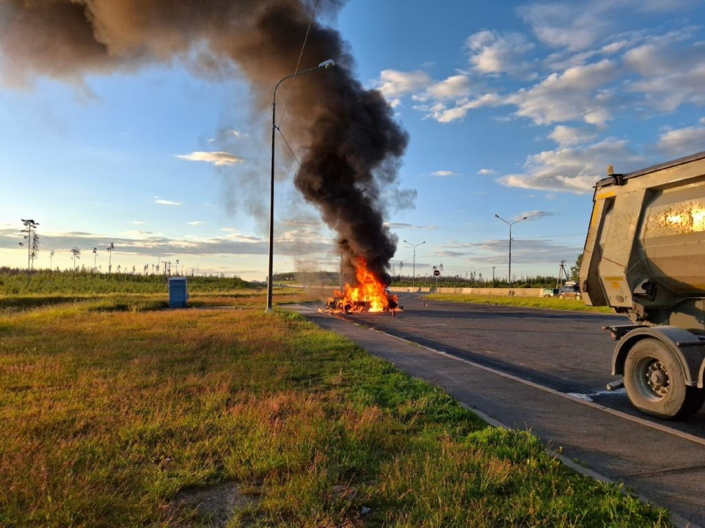 Легковая машина загорелась, мужчину зажало в салоне – он скончался на месте. На пассажирском кресле ехала 32-летняя женщина. В тяжелом состоянии ее госпитализировали.