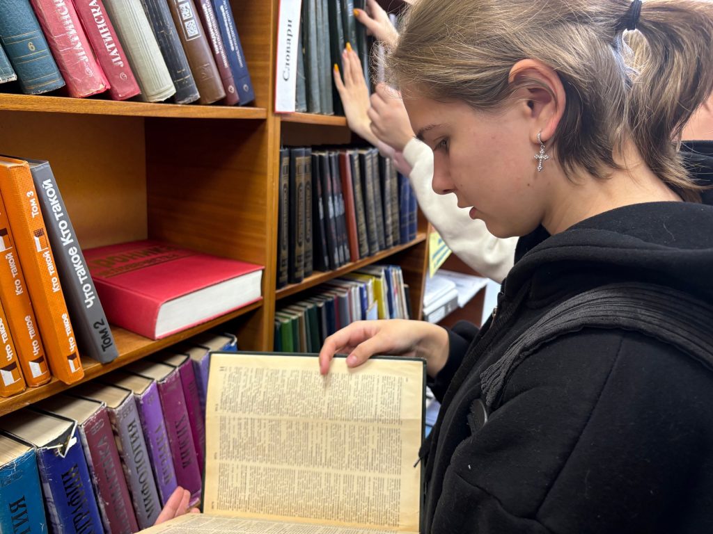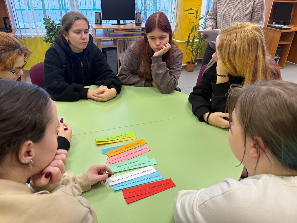 Группа была разделена на две команды, что позволило организовать интерактивную форму работы и вовлечь всех студентов в обсуждение темы толерантности и межнационального уважения. Для ребят был проведён библиокешинг — игровое командное задание по типу «поискового квеста» с использованием фондов библиотеки, в ходе которого участники по подсказкам и заданиям знакомились с культурой, традициями и историей народов, населяющих Ленинградскую область.