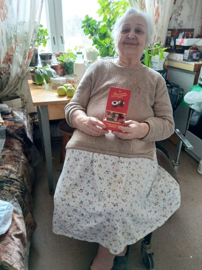 Самое страшное, что может случится с пожилым человеком – это остаться в одиночестве. Поэтому наши волонтеры навестили пожилых граждан, душевно побеседовали. Кто — то из волонтеров подарил цветы, кто-то шоколадку. Пожилые люди были приятно удивлены таким вниманием.