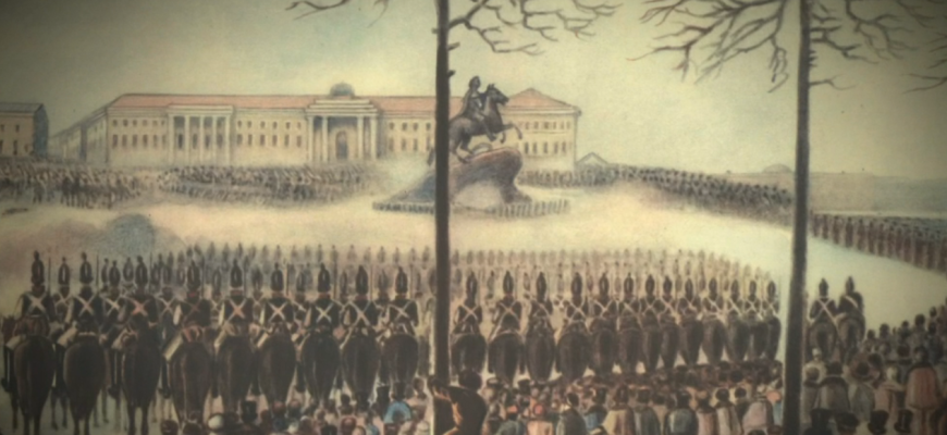 Историк Яков Гордин отмечает, что восстание 14 декабря 1825 года часто называют «вялым, стоячим», но на самом деле это не так. Гордин полагает, что «лидерами тайного общества был разработан очень дельный боевой план». Стояла задача взять под контроль Зимний дворец, арестовать императорскую семью, после чего захватить Сенат и Петропавловскую крепость. Однако этот план не сработал, потому что начались разногласия внутри самого тайного общества. В результате декабристы – около 3 000 человек, оказались окружены правительственными войсками численностью в 12 000 штыков и сабель, которые удалось собрать императору Николаю I. Восставшие отчаянно защищались, отбивая атаки кавалерии, но против них «пустили артиллерию, и боевые порядки декабристов были расстреляны картечью в упор». В этот день было много убитых и раненых, в том числе и среди мирных людей, которые пришли на площадь. Восстание было подавлено.