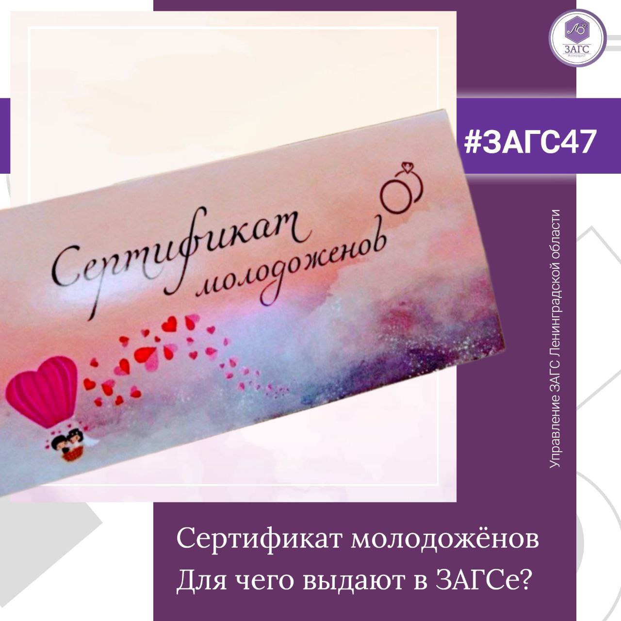 Сертификат выдается новобрачным в ЗАГСах Ленинградской области вместе со свидетельством о заключении брака в день бракосочетания.