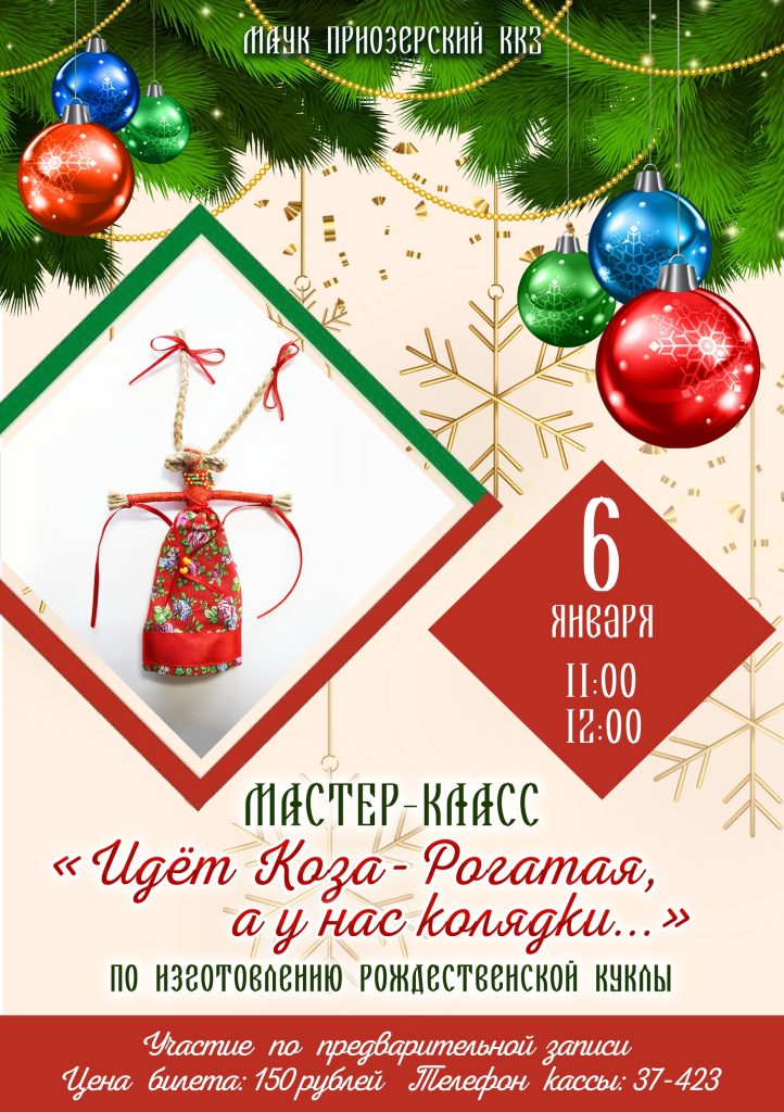 Пройдут рождественские мастер-классы «Идёт коза рогатая, а у нас колядки…» Кукла «Коза» — один из главных героев святочных гуляний на Руси, её делали без лица, так она считалась неодушевлённой, но на наших мастер-классах каждая куколка точно обретет свою душу и неповторимый характер.