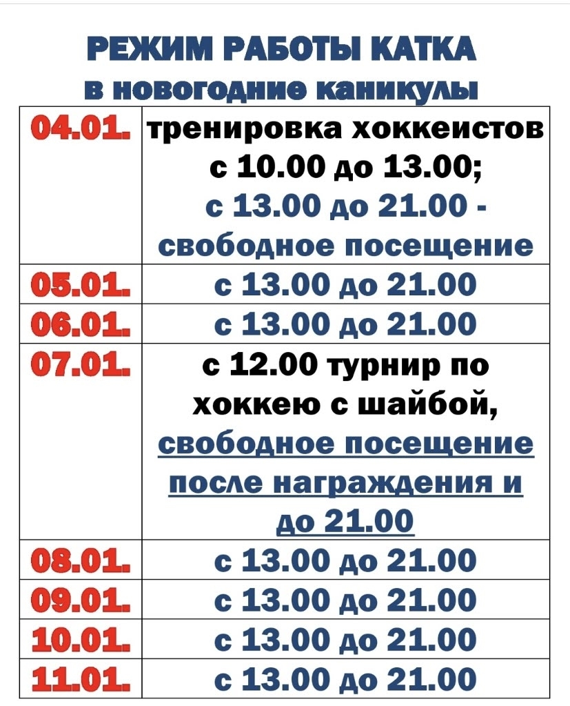 7 января в 13:00 состоится наш традиционный Рождественский турнир по хоккею с шайбой! Приглашаем всех зрителей и болельщиков поддержать команды. Будет очень жарко! 🔥