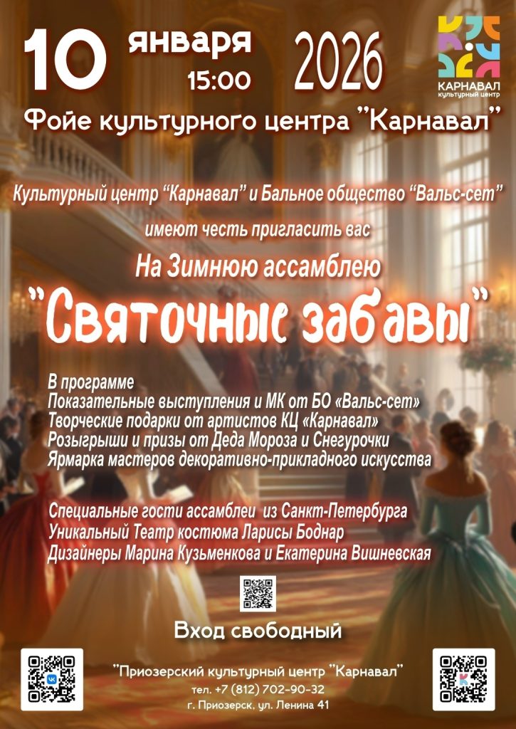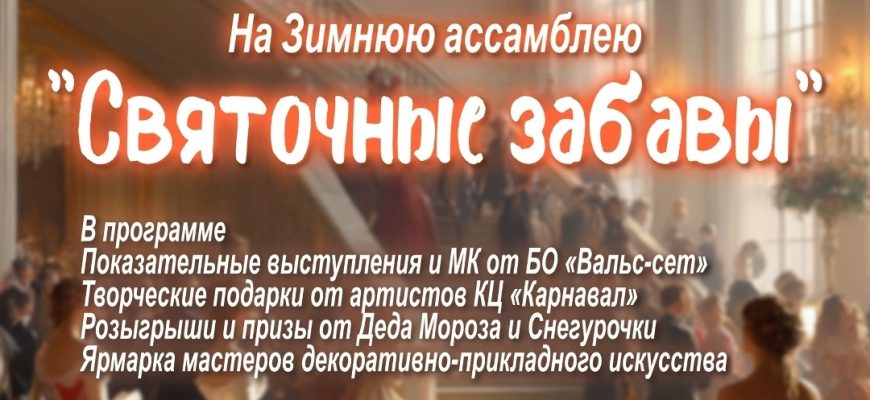 Если это так, то мы ждем вас на волшебной Зимней ассамблее «Святочные забавы» в интерьерах сталинского ампира КЦ «Карнавал».