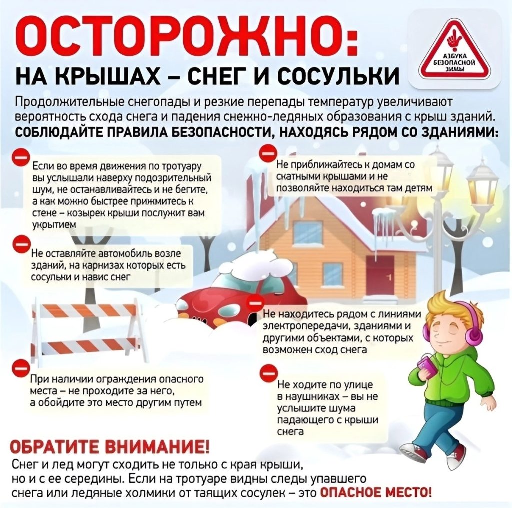 Основные рекомендации и меры предосторожности при угрозе схода снега с крыш зданий:
