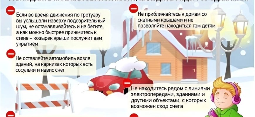 Основные рекомендации и меры предосторожности при угрозе схода снега с крыш зданий: