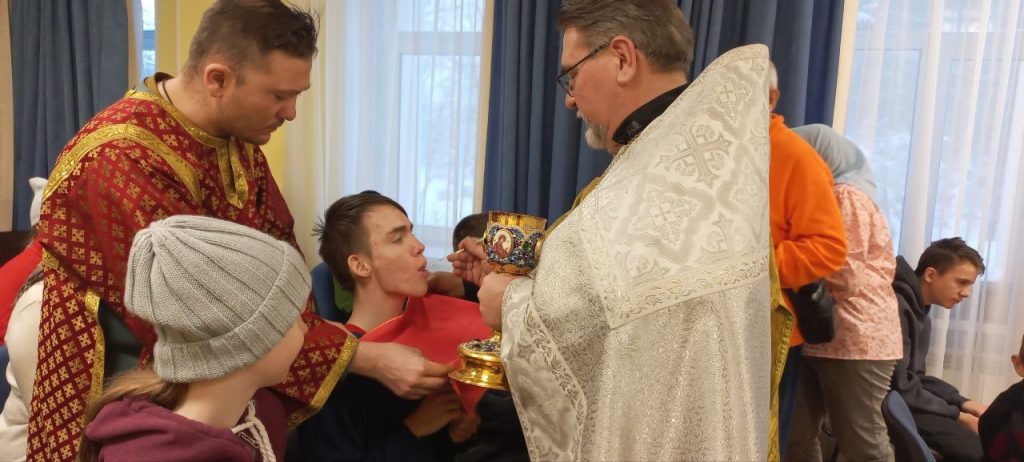 Во время литургии батюшки причастили не только присутствующих ребят, но также священники обошли все корпуса, причастили всех детей, живущих в «детском доме Ангелов», как называет это учреждение отец Димитрий, подарив деткам много радостных впечатлений, ощущение чуда и приобщения к доброму и светлому Божьему миру.