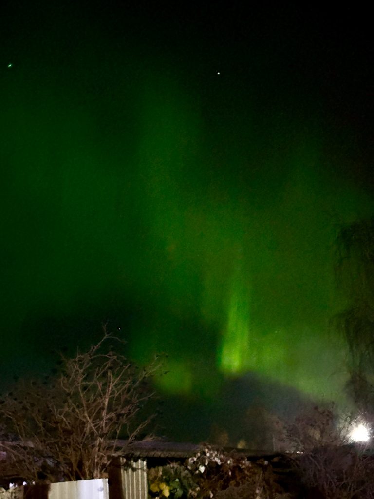 Лучшее время для наблюдения за северным сиянием — сентябрь и октябрь, при ясной, относительно теплой погоде. Вообще же наблюдения возможны круглый год, кроме периода белых ночей. Особенно хорошо подходит для наблюдений побережье Ладожского озера. А у меня сияние видо с порога дома…