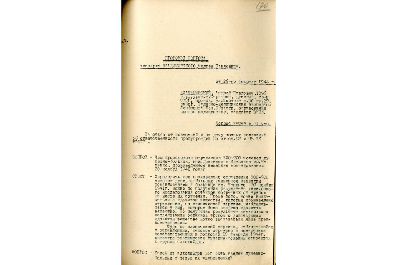 «В результате такого варварского отношения к больным среди них началась большая смертность и к ноябрю месяцу 1941 года умерло около 200 человек. Не останавливаясь на этом, немецко-фашистские захватчики решили душевнобольных уничтожить путем отравления», — сказано в приговоре трибунала.
