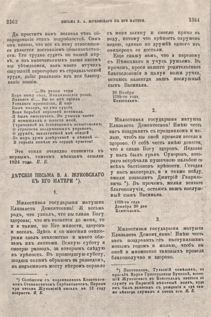 ксерокопия детских писем Василия Андреевича Жуковского к его матери из Кексгольма;