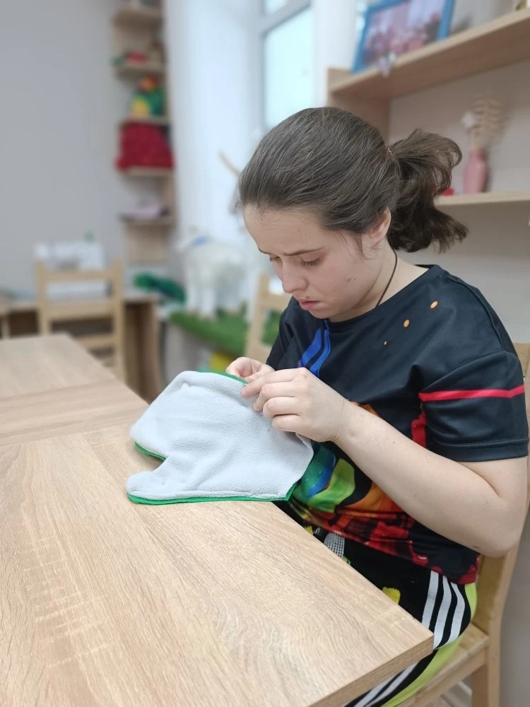 Наряду с комплексной реабилитацией, так как ребенок имеет ограничения по здоровью она проходит обучение в #социальная_мастерская по программе «Швейное дело».