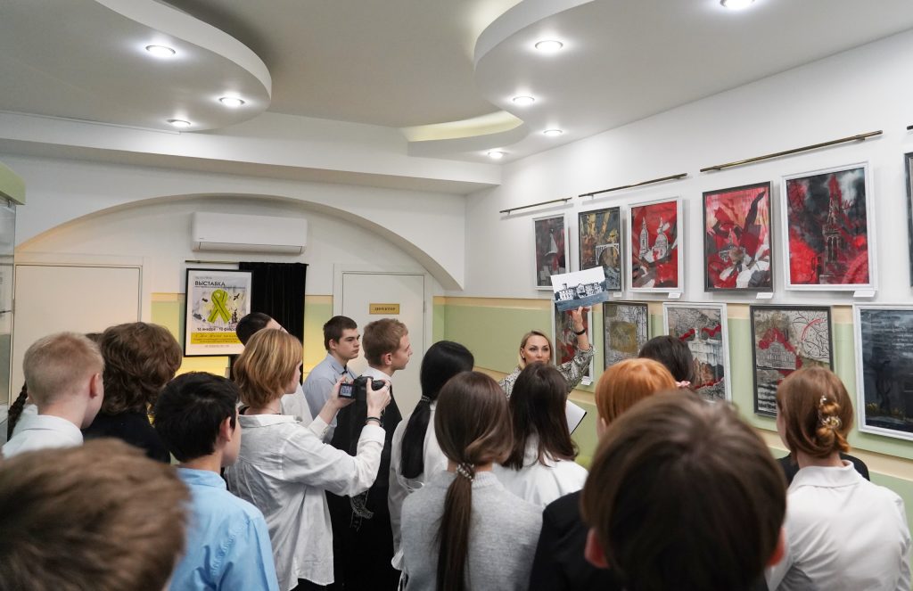 26 января, главными героями экспозиции стали ученики 8-х классов средней общеобразовательной школы №5, которым выпала возможность провести тематический классный час прямо здесь, на площадке, где представлены уникальные 25 полотен ручной работы, рассказывающие о судьбе памятников культуры и архитектуры Ленинградской области в период Великой Отечественной войны.