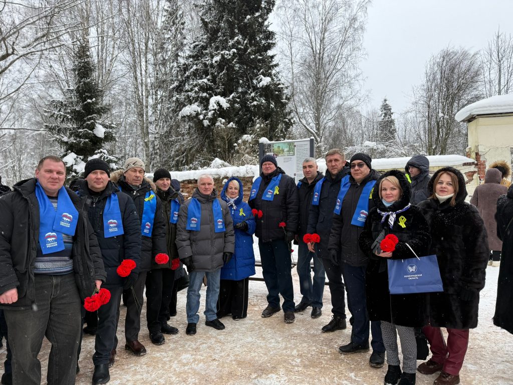 В ходе торжественно-траурной церемонии, организованной у мемориала в Зайцево в ознаменование 82-й годовщины полного освобождения Ленинграда от блокады, участники почтили память погибших, возложив цветы к подножию памятника. Этот акт стал символом уважения и благодарности за героизм и стойкость жителей города-героя.