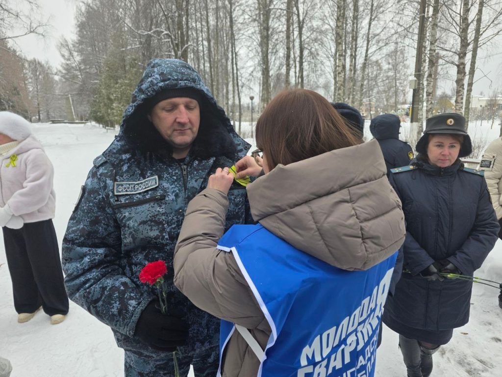 Активисты Молодой гвардии «Единой России» раздавали всем участникам символически блокадные ленточки.