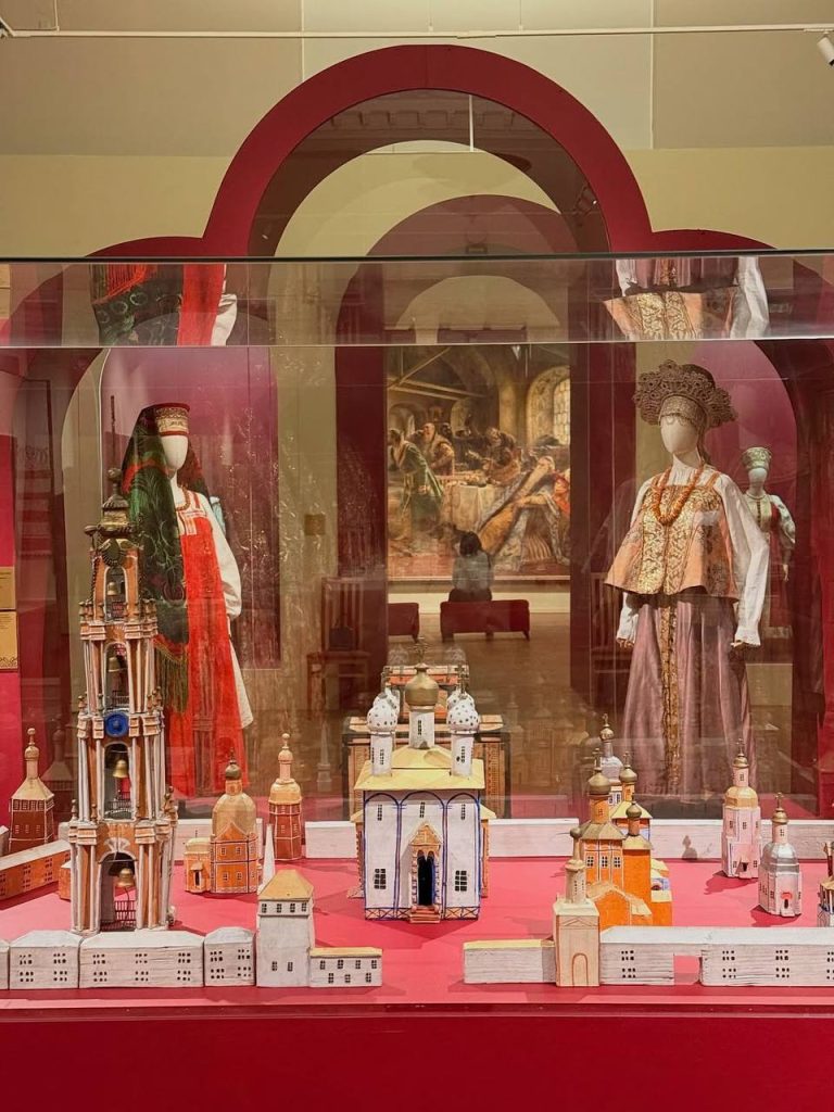 А в конце выставки можно увидеть работы Вячеслава Зайцева из коллекций, вдохновлённых народными традициями.