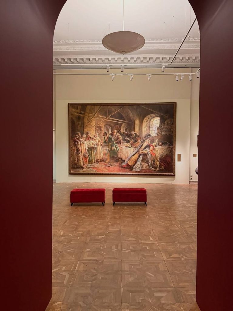 В корпусе Бенуа представлено множество экспонатов — живопись, уникальные старинные костюмы, знаменитое кружево, крестецкая строчка и золотное шитье показаны в пространстве отечественной истории с XVI по начало XXI века.