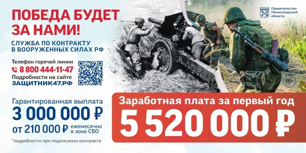 3 млн рублей — увеличенный размер гарантированной выплаты гражданам, заключившим контракт в Ленинградской области для участия в СВО.