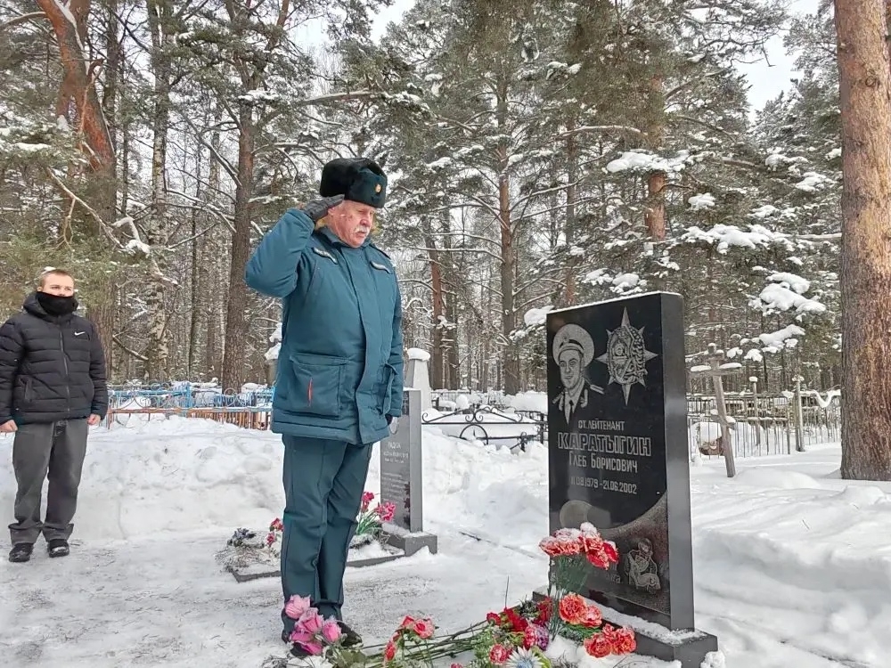 Сегодня, в рамках акции «Цветы у обелиска» сотрудники молодёжного центра «ДОМ К-47» Многофункциональный молодежный центр «ДОМ К-47» , совместно со студентами Приозерского политехнического колледжа Приозерский политехнический колледж, государственными инспекторами Приозерского отделения Центра ГИМС ГУ МЧС по Ленинградской области ГИМС Приозерск и работниками ОГПС Приозерского района Люди VS огня и дыма возложили цветы к памятнику, установленному на могиле Каратыгина Глеба Борисовича (водолаз поисково-спасательного отряда «Лидер» МЧС России)