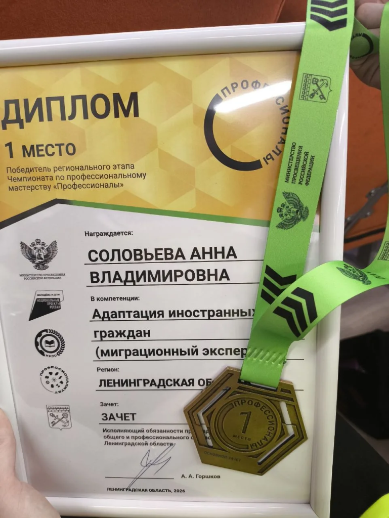 🥇Аня Соловьёва, компетенция «Адаптация иностранных граждан (миграционный эксперт)»;