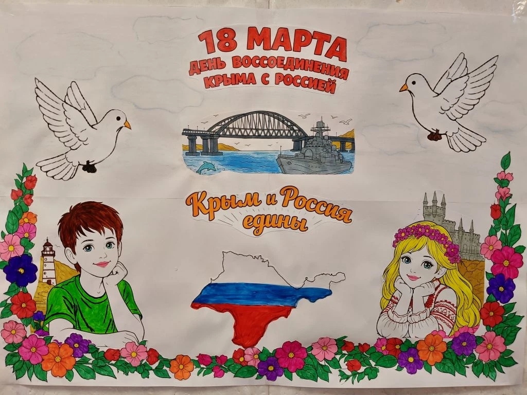 А самым запоминающимся моментом стало совместное творчество: ребята с радостью принялись за создание тематического плаката «Крым- Россия», выполняли аппликацию «Крымская весна» вкладывая в него все свои впечатления и полученные знания.