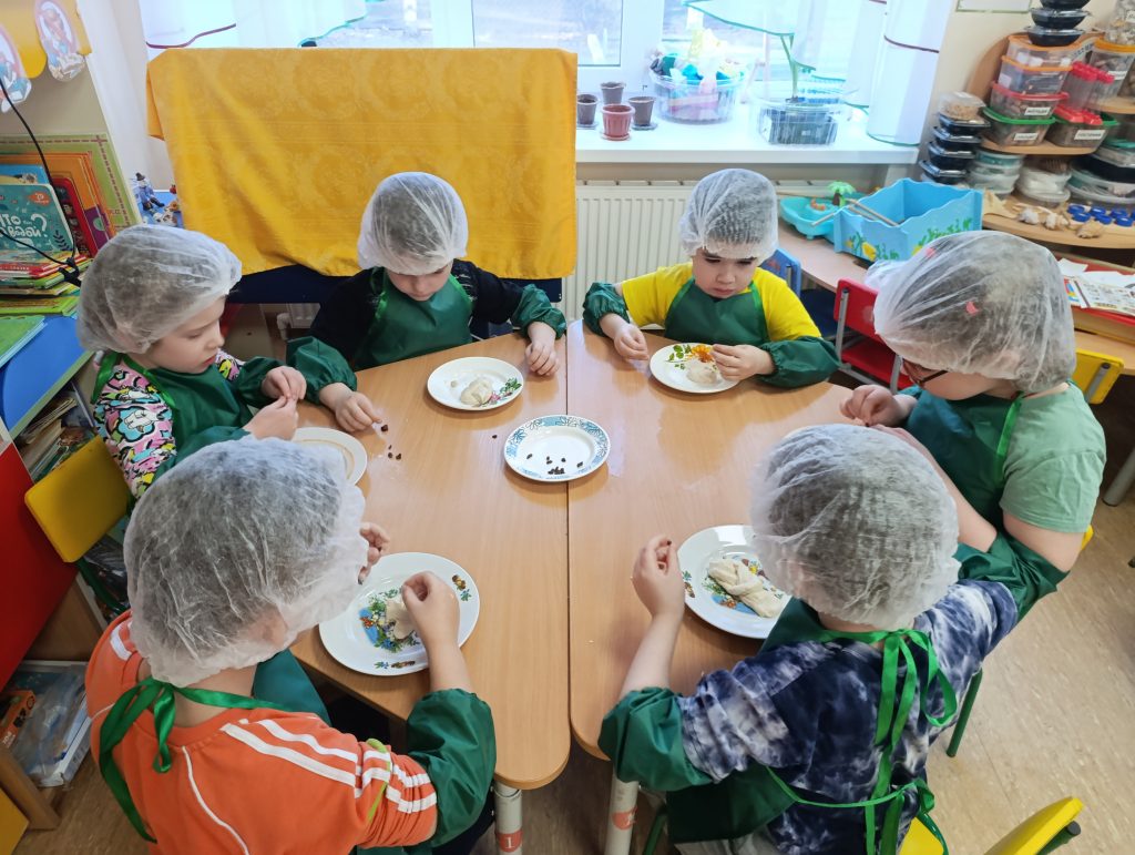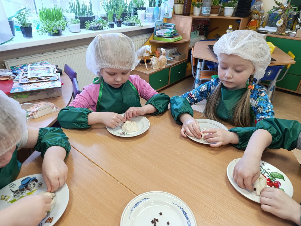 В этот день ребята приняли участие в старинной русской традиции — выпечке жаворонков из теста.