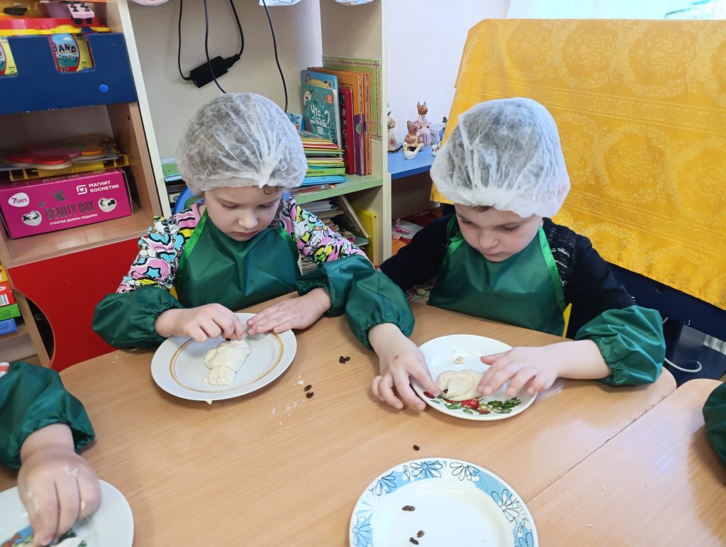 Каждый ребёнок с радостью лепил свою птичку: оформлял глазки из изюма, делал хвостик, придумывал украшения. Когда все жаворонки были готовы, ребята отнесли их на кухню, где наши повара с заботой выпекали угощение в духовке. С нетерпением и волнением дети ждали, когда же ароматные птички будут готовы.