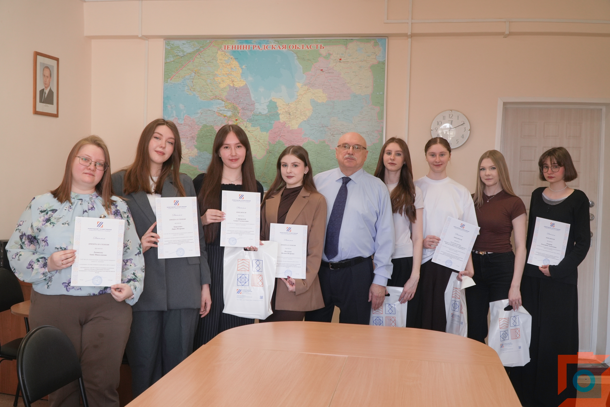 30 марта 2026 года в ЛГУ им. А.С. Пушкина прошла торжественная церемония награждения победителей и призёров регионального этапа IX открытого конкурса студенческих проектов «Россия, устремленная в будущее». Поздравил студентов и вручил им награды Владимир Павлович Журавлев, проректор по воспитательной работе, молодёжной политике и взаимодействию с органами власти, общественности и средствами массовой информации.