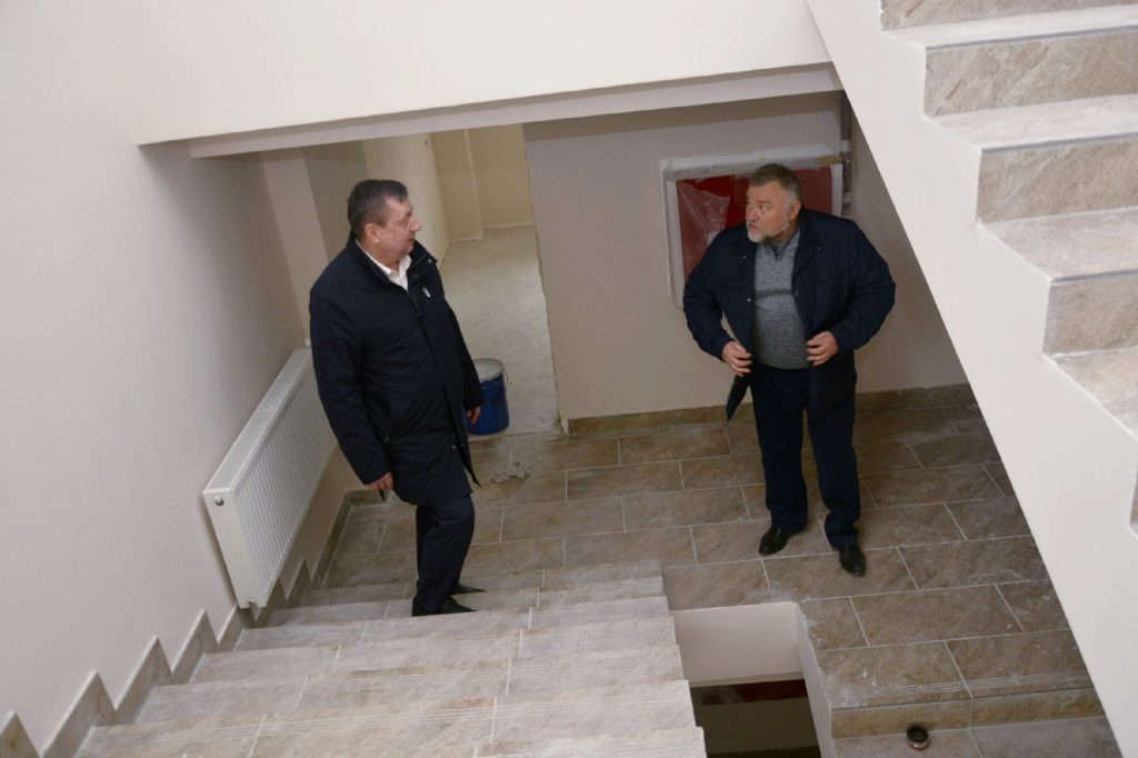 7 апреля глава администрации Приозерского района Александр Соклаков проверил ход работ в будущем культурно-досуговом центре посёлка Сапёрное. Вместе с главой администрации Ромашкинского поселения Сергеем Танковым осмотрели помещения и оценили качество.
