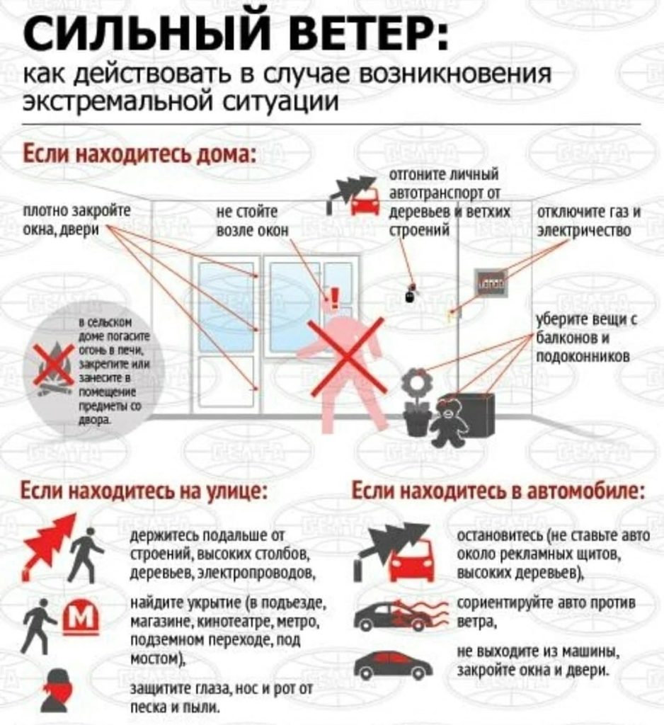 1. Все окна домов необходимо плотно закрыть, убрать с балконов и лоджий предметы, которые могут выпасть наружу.