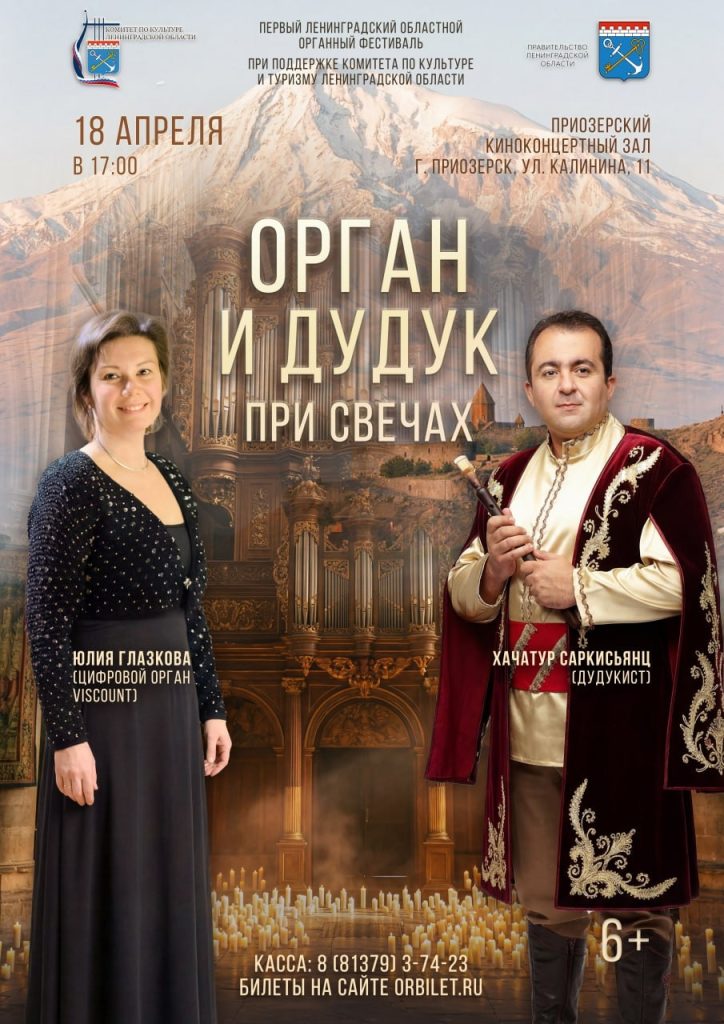 Приозерцев ждёт по-настоящему редкое событие: «Орган и дудук. Созвучие двух миров». Это концерт, где встречаются два инструмента с абсолютно разной природой и колоссальной выразительностью. Орган, который по праву называют королем инструментов, создаёт масштаб и “архитектуру” звучания, заполняя зал мощным объёмом. Дудук, напротив, звучит как человеческий голос: тёпло, бархатно, пронзительно. Их союз рождает уникальную тембровую магию, которую невозможно спутать ни с одним другим концертным составом.
