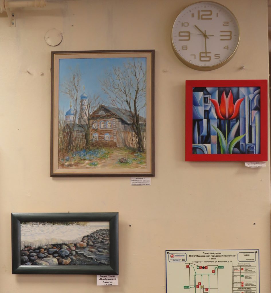 На выставке свои работы представили художники из Объединения Приозерских художников: Елена Чумак, Светлана Травникова-Моисеенкова, Анна Никитина, Марина Полетаева, Наталия Димова.