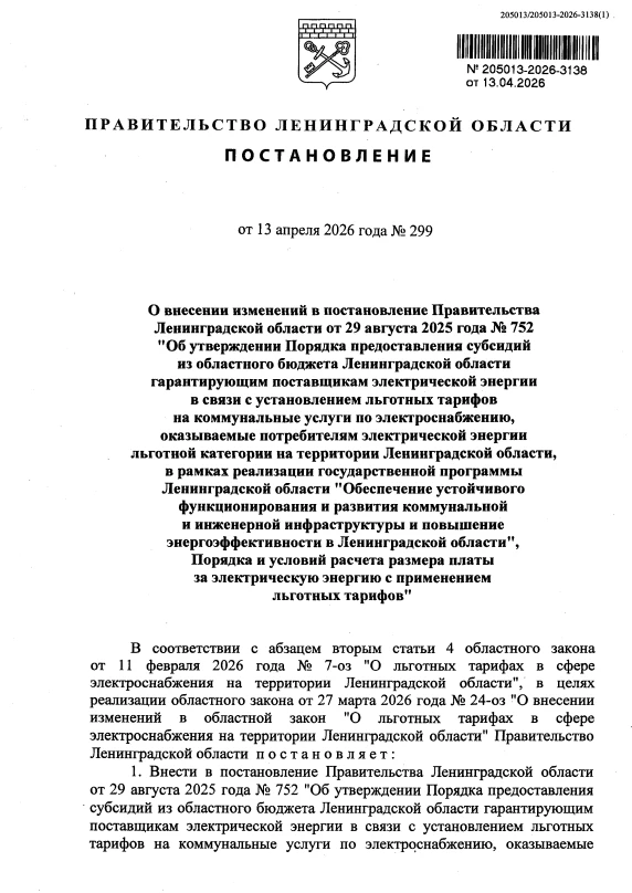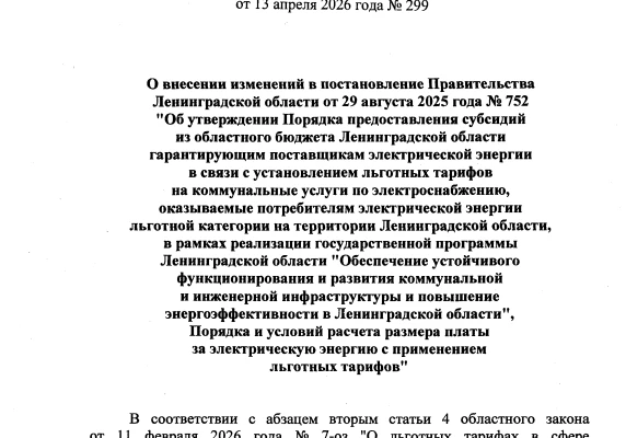 Опубликовано Постановление Правительства Ленинградской области, в котором поясняется, какие документы необходимо заполнить для получения льготы на электроэнергию.