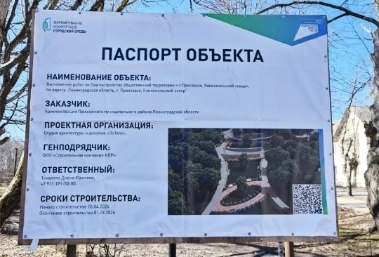 Благоустройство Комсомольского сквера в Приозерске реализуется в 2026 году по федеральному проекту «Формирование комфортной городской среды» (партия «Единая Россия»). Проект предусматривает создание современной детской площадки, функциональных зон отдыха и спорта для взрослых, а также обновление инфраструктуры. Обновление сквера должно улучшить качество городской среды и создать новые точки притяжения для жителей и гостей Приозерска.