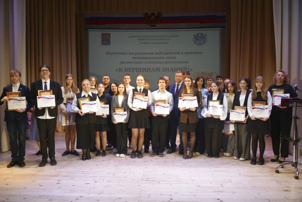 Сегодня в Киноконцертном Зале города Приозерска прошла церемония чествования победителей и призёров муниципального и регионального этапов Всероссийской олимпиады школьников «К вершинам знаний».