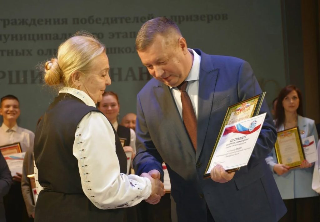 Муниципальный этап объединил 1129 участников, и я искренне рад, что 310 из них стали победителями и призёрами. Региональный этап принял 56 наших ребят. Результат: 18 призёров по 11 предметам и 1 победитель! Сегодня на празднике — яркое созвездие талантов, и эти аплодисменты — всем вам, находящимся в зале, а также вашим наставникам!Особая благодарность — педагогам и наставникам. Вы не просто даёте знания, вы воспитываете гражданскую ответственность и патриотизм. Спасибо родителям за поддержку.