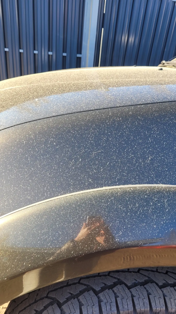 Добрый день. Хочется вновь поднять животрепещущую тему для нашего прекрасного города. Данные снимки были сделаны 11 апреля 2026 года, прекрасным теплым солнечным днем. Машины стояли два дня, и на них накопился вот такой слой веществ, летающих по воздуху. Про запах я вообще молчу.