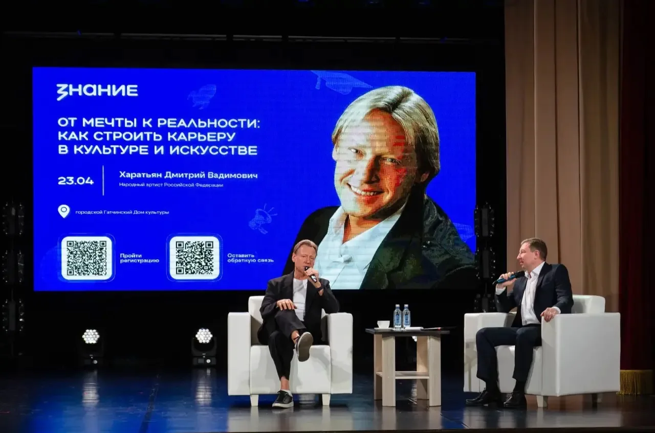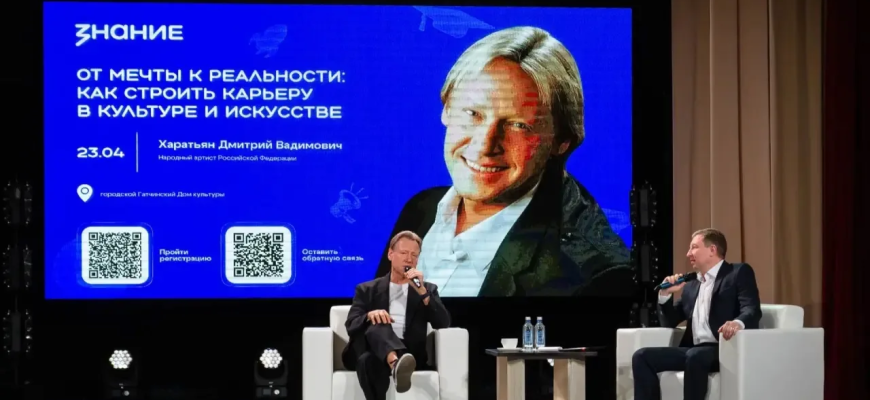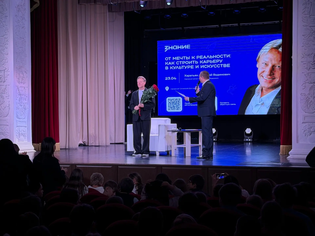 Народный артист Российской Федерации, лектор Общества «Знание» Дмитрий Харатьян встретился со школьниками Ленинградской области. Диалог с ребятами был посвящен тематике построения карьеры в сфере культуры и искусства. Молодые люди смогли заглянуть в закулисье актерской профессии, узнать о том, что скрывается за кадром большого кино и скрыто от зрителей театральных постановок.