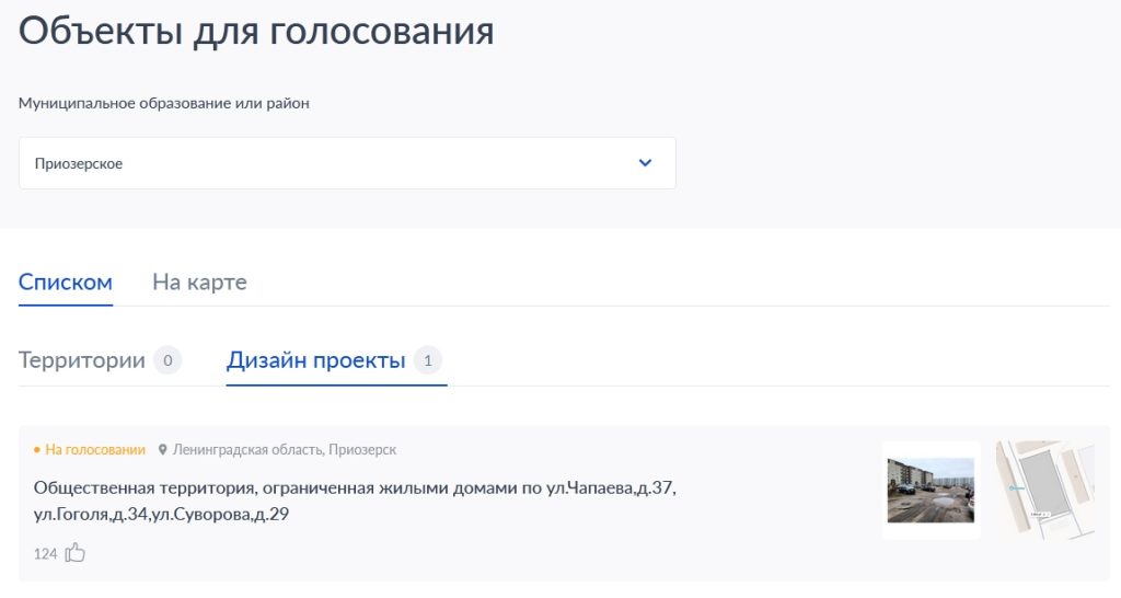 Особое внимание уделяется Приозерску, где жители могут выбрать один из двух проектов благоустройства общественной территории, локализованной между домами № 37 по улице Чапаева, № 34 по улице Гоголя и № 29 по улице Суворова.