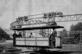 На фото — подвесная электрическая дорога, созданная в 1900 году в Гатчине. Она была разработана русским